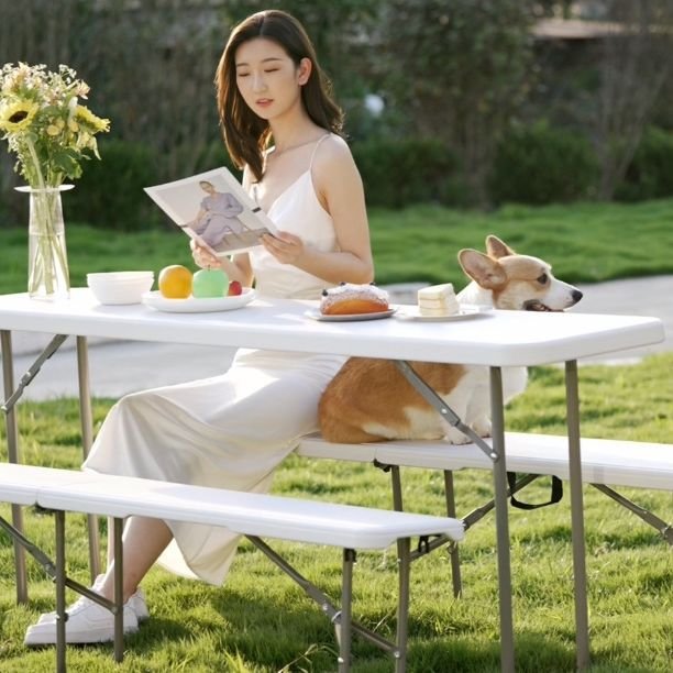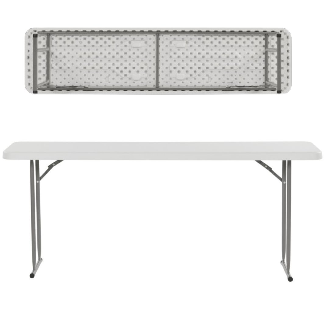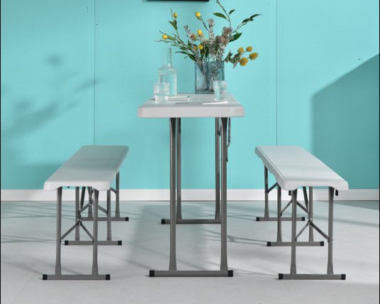 Foldable legs but with solid-top table is preferred for commercial use. compared to fold-in-half table, it’s more rigid and durable.